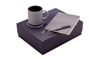 Personalizace logem možná na box, hrnek, zápisník i propisku